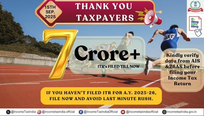 As per CBDT a record over 7.3 crore ITRs were filed till September 15, surpassing last year’s 7.28 crore.